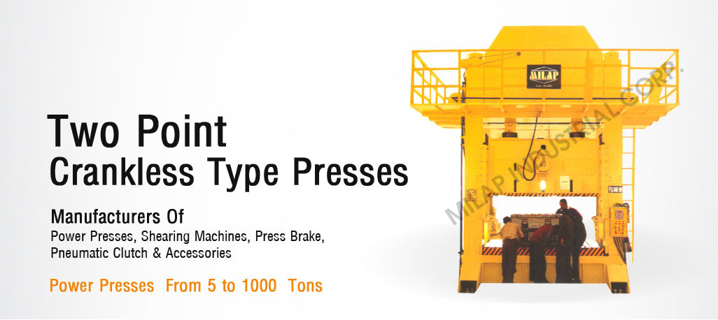 MILAP INDUSTRIALCORPORATION is a leading manufacturer and exporter of power presses and is serving the machine tool industry since 1961. This Company has come into existence by the stringent efforts of S. Bhupinder Singh and his two sons Mr. J.P. Singh and Mr. Harpreet Singh. |